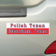 Muestra tu orgullo en tu ciudad natal. Este hermoso diseño de pegatinas de parachoques presenta una cubierta de bandera polaca roja y blanca y las palabras texano polaco en la parte superior y Stoneham, Texas en la parte inferior.