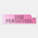 Este diseño se imprime en un fondo rosado intrépido. Las palabras "ella persistió." se imprime en tipografía negra intrépida.