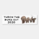 pegatina "políticamente incorrecto" que representa una pequeña manada de elefantes de atrás. Todas las secciones del texto se pueden modificar para la redacción, el tamaño del tipo de letra, el color y el año electoral. El texto de humor político dice actualmente: "Tira los vagos". El año, que también se puede cambiar, está fijado en 2020. Una versión de 2018 ya está hecha con anticipación en la colección de "Humor electoral" de la tienda.