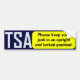 TSA: ¡Mantenga por favor sus desperdicios una posición vertical y bloqueada!