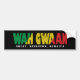 Sólo con esta pegatina de parachoques jamaiquina sentirás vibraciones positivas. Incluye la frase WAH GWAAN en verde, amarillo y rojo en un estilo angustiado. El texto debajo es personalizable, por lo que puede agregar su propio nombre y mensaje