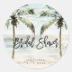 Una hermosa pegatina para despedida de soltera con un diseño de playa tropical, palmeras exuberantes y luces brillantes. Fácil de cambiar o eliminar los campos de texto disponibles para adaptarse a sus necesidades personales. Por favor, visite mi tienda para encontrar artículos coincidentes en esta colección, como invitaciones, rsvp, gracias, etc.