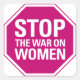 Un pegatina con un cartel rosado impreso con el eslogan Detengan la guerra a las mujeres para mostrar su oposición a las políticas y leyes que restringen los derechos de las mujeres, especialmente los derechos reproductivos.