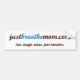 Pegatina para el parachoques de JustBreatheMom.com. Vivo. Risa. Relájese. Apenas respire.