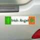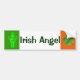 Un ángel verde con un corazón del oro que contiene un trébol de cuatro hojas, las palabras "ángel irlandés" y un trébol de cuatro hojas en un fondo de la bandera irlandesa