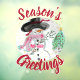 Diseño temático de las fiestas navideñas con 'Season's Greetings' en letra de cuerpo burgundy
