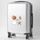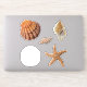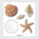 Cinco pegatinas aislados de conchas marinas. Las imágenes realistas incluyen una concha de vieiras de cebolla de leones, junonia manchada, dólar de arena, y estrella de pez estrella de mar y marrón. Los pegatinas vienen en muchos tamaños, con bordes optativos de color blanco o transparente. Utilícelo para decorar paquetes, como sellos para sobres, o favores de fiesta para niños.