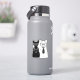 Este diseño presenta un gato negro de sexo femenino vestido con collar de perlas y un gato blanco de sexo masculino vestido con corbata de puntos.