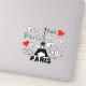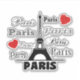 Ilustracion de diseño de textos de París con la Torre Eiffel y decoración de corazones rojos