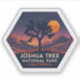 Trae a casa la mística belleza del desierto con este pegatina del Parque Nacional Joshua Tree de estilo vintage. El diseño presenta una solitaria silueta de árbol de Joshua que se alza contra un impresionante cielo nocturno, con una luna brillante y montañas lejanas bañadas en el cálido resplandor de la puesta de sol. Este pegatina artístico, de inspiración retro, capta la atmósfera mágica y única de uno de los paisajes más icónicos de California. Perfecto para personalizar tu laptop, botella de agua, auto o equipo de viaje, este pegatina duradero e insondable es una excelente manera de mostrar tu amor por la naturaleza, la contemplación del sol y los parques nacionales. Es un recuerdo fantástico o un regalo para quien quiera practicar senderismo, acampar o la serena belleza del desierto.