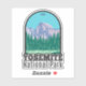 Diseño artístico vectorial yosemite. El parque es famoso por sus secuoyas gigantes y antiguas, y por sus vistas al túnel, la icónica vista de la gran caída de Bridalveil y los acantilados de granito de El Capitan y Media Cúpula.