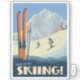 Celebra la alegría de las aventuras de invierno con el cartel vintage de "Pase el día esquiando" de Anderson Design Group. Con esquiadores deslizándose por una montaña nevada con esquís naranjas brillantes en primer plano, esta obra de arte aporta un encanto retro a cualquier refugio de esquí o casa de invierno.