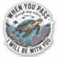 Recuerda la promesa de Dios con este inspirador pegatina que presenta a Isaiah 43:2: "Cuando pases por aguas profundas, estaré contigo". El diseño muestra una tortuga marina nadando con gracia entre los corales y los peces, simbolizando paz, fuerza y fe a través de los desafíos de la vida. Con letras atrevidas y obras de arte inspiradas en el océano, este pegatina de contorno duradero es perfecto para decorar botellas de agua, laptops, revistas o regalos. Disponible en una variedad de tamaños, hace un regalo lleno de fe para cualquiera que ame las escrituras y el mar.