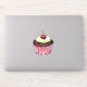 Pegatina en un detallado ilustracion de un quequito de chocolate con helado de chocolate, un remolino de crema batida y una cereza encima - ¿hambriento ya?