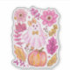 Pegatina Pastel Pink Halloween Ghost with Flowers and Pumpk
