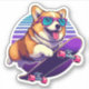 Un caprichoso corgi con gafas de sol frescas se captura en mitad de la acción, equilibrando hábilmente en una tabla de patinaje. La lengua del perro se desliza con cuidado, exudando un aire de diversión y emoción. los años 80, sintetizador,