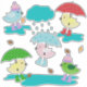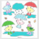 Pegatina Patos en la lluvia con paraguas y botes de lluvia