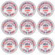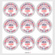Nueve pegatinas en una hoja de pegatina de 14 x 14 pulgadas. Colores patrióticos de color rojo y azul, letras de texto alternan entre rojo y azul, ambos delineados con blanco, luego los centros rojos se delinean en azul, el azul delineado en rojo. Celebrar el 250 aniversario de la firma de la Declaración de Independencia de Estados Unidos. El diseño está disponible en otros tamaños de pegatina, camisetas, otros productos y se puede transferir a más productos.