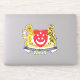 Pegatina Patriótico del Escudo Nacional de Armas de Singapur con la representación del Escudo de Armas de Singapur en los colores amarillo, rojo, blanco y azul. Debajo del escudo de armas está la inscripción Singapur hecha con la hermosa fuente "Aceserif" y el color negro. La inscripción está en la parte inferior infundida con el escudo de armas, pero se puede mover libremente o incluso eliminarla si se desea un diseño un poco diferente. El pegatina del escudo de armas de Singapur es un regalo fantástico para cualquier singapurense orgulloso de su herencia. El Escudo Nacional de Armas de Singapur es el símbolo heráldico que representa a la nación insular del sudeste asiático de Singapur. Fue adoptada en 1959, el año en que Singapur se autogobernó dentro del Imperio Británico. El comité que lo creó, encabezado por el entonces viceprimer ministro Toh Chin Chye, también fue responsable de la bandera nacional y el himno nacional de Singapur. En el centro del emblema hay un escudo rojo con una media luna blanca (una luna nueva, que representa a una joven nación en ascenso) y cinco estrellas blancas (que representan varios ideales nacionales, incluido el multiculturalismo), apoyados por un león y un tigre (que representan Singapur y Malasia respectivamente); debajo de ellos hay una cinta azul grabada con Majulah Singapur en oro, malayo para "Onward Singapore". Fuente: Wikipedia, https://en.wikipedia.org/wiki/Coat_of_arms_of_Singapore