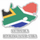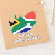 Pegatina patriótico del Mapa de la Bandera de Sudáfrica en el esbozo del mapa de Sudáfrica. El mapa está impregnado con el patrón y los colores de la bandera nacional de Sudáfrica. También se incluyen pequeños pegatinas con el nombre del país. El texto es totalmente personalizable usando la función "Personalizar". El pegatina de mapas de Sudáfrica es el regalo perfecto y pegajoso que se puede colocar en cualquier lugar que desee. © 2021 Países Del Mundo
