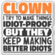 Un Payaso Divertido Dice "Payaso Trato De Hacer Que Las Cosas Sean Pruebas Idiotas Pero Siguen Haciendo Mejores Idiotas". Agarra este diseño de payaso gracioso como un regalo gracioso para una madre, papá o amigo formidable.