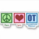 Paz Amor pegatina de Terapia Ocupacional para tu terapeuta ocupacional favorito. Un signo de paz, corazón y las letras para hacer un gran regalo a todos los terapeutas ocupacionales en su práctica u oficina
