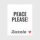 Paz por favor, blanco negro y rojo texto minimalista moderno tipografía audaz anti pegatina de protesta contra la guerra.