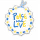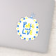 Muestra tu apoyo a Ucrania con esta calcomanía de vinilo con una flor blanca moderna que tiene el texto "Paz y Amor" con los colores de la bandera azul y amarilla de Ucrania sobre fondo negro.