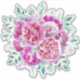 Delicado ramo acuático de peonías lujosas rosadas y violetas con hojas verdes y turquesas.