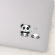 Un par de lindos pandas personalizados. El panda izquierdo sostiene un palo de bambú mirando al panda derecho que se ha quedado dormido.