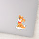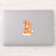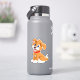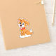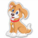 Perro de caricatura sonriente, cachorro marrón sonriente con puntas de garra blanca, ojos azules y cuello rojo.