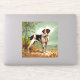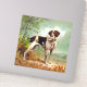 Perro cazador con pájaro en la boca. Dibujo vintage colorido. Recuperador con piel de cazador colorida