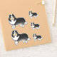 El original ilustracion personalizado de Destei de un lindo perro pastelero tricolor Shetland / perro de raza Sheltie. El diseño se coloca cinco veces en la hoja en dos tamaños diferentes. Hay dos más grandes y tres más pequeñas.