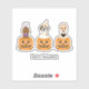 Ilustracion de tres perros con calabazas vestidas con atuendo de Halloween.