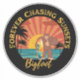 Pegatina Persiguiendo por siempre a Sunsets Bigfoot Surfing