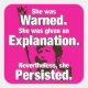 Muestre su apoyo a todas las mujeres 'persistentes' del mundo (¡incluyendo a usted!) mostrando con orgullo este pegatina. La mitad de todas las ganancias se destinarán a la ACLU y a la Familia Planificada. Todas las imágenes tienen derechos de autor.
