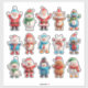 Figuinas de fiestas coloridas y juguetonas que representan a Santa, hombres de nieve alegres, renos y pingüinos vestidos con ropa de temática festiva, que simbolizan el espíritu, la alegría y la celebración de Navidades e invierno.