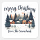 Añade un toque personalizado a tus regalos o tarjetas de vacaciones con este pegatina de corte de Merry Christmas. En el centro hay un pueblo rodeado de nieve y estrellas brillantes. Arriba están las palabras "Feliz Navidad" y abajo está el espacio para un nombre. Puede cambiar el texto según sea necesario.