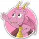 Pegatina de vinilo con ilustracion de cabeza de un lindo dragón volador rosado, en círculo rosado, diseño lindo de fantasía / cuento de hadas para niños por Maxi Harmony