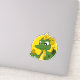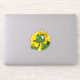 Pegatina de vinilo con un ilustracion de cabeza de un lindo dragón verde sosteniendo un huevo dorado, diseño en círculo amarillo, fantasía linda / diseño de cuento de hadas para los niños por Maxiharmonia