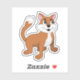 pegatina de vinilo cortado por personalizado con un ilustracion de un lindo jengibre feliz y gatito blanco, un regalo lindo para los niños con gato personalizado,