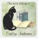 Pegatina personalizado de la placa de reserva Cat and Books con fondo de color verde, con texto de personalizable.