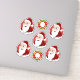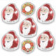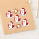 Conjunto de siete pegatinas cortados de vinilo con un ilustracion de un feliz Santa Claus sonriente con un gorra rojo, de fondo rojo; juramento a cinco pegatinas de Santa Claus y dos pegatinas con un Navidad; con una plantilla de texto de personalizable para tu nombre o mensaje
