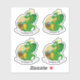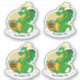 Conjunto de cuatro pegatinas de vinilo cortados con el ilustracion de un lindo dragón verde vigilando un tesoro; motivos de fantasía de personalizado animal para los niños; con plantilla de texto personalizado para el nombre de su hijo o mensaje personalizado