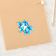 Paquetes en forma de personalizado pegatina de corte Kiss sobre agrupación de vinilo de flores pintadas de azul.