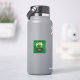 Pegatina de vinilo con un Ilustracion de un leprechaun sonriente vestido con un traje verde, una corbata-arco y un gorra de bolos sentados dentro de una olla de oro y sosteniendo una pinta de cerveza, con un arco iris amarillo, verde y naranja al fondo. La imagen se coloca sobre un fondo verde oscuro y sin fisuras con rocas de champú. ¡Un diseño perfecto para celebrar el Día de San Patricio!