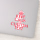 Personalizado mantener la calma y continuar con el Pegatina de vinilo cortado por contorno. Plantilla personalizada con corona. Crea tu propia parodia graciosa. Disponible en tamaños pequeños y grandes. pegatinas Guay de corte de besos para regalos, productos, objetos, decoración, computadora portátil, tablet, botella de agua, teléfono y más. Oficinas de moda y suministros escolares. Plantilla moderna de tipografía. Divertidas ideas de regalo de cumpleaños para él o ella. Color rojo o personalizado.