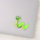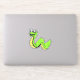Este pegatina de vinilo es una serpiente personalizado que es verde neón y amarillo claro con grandes ojos blancos y sonriente.