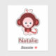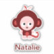 Pegatina de mono personalizado rosado con texto de personalizable.