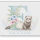 A beautiful, customizable sticker featuring a charming watercolor illustration of a ferret sitting next to the elegant monogram letter 'F'. The letter is adorned with soft pink and blue watercolor flowers and greenery. This design is perfect for adding a personalized, custom touch to laptops, water bottles, notebooks, or party favors. The sticker can be easily personalized by the customer to add their own name or text, making it an excellent gift for ferret lovers, or anyone with a name starting with 'F'.